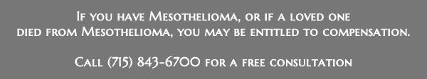 If you or a family member were exposed to asbestos and developed an asbestos-related illness such as mesothelioma, you may be entitled to compensation. If you have been diagnosed with mesothelioma, or if you have lost a loved one to mesothelioma, and you believe it is related to asbestos exposure, our Wisconsin mesothelioma attorneys can advise you as to your rights. We have represented individuals from Marshfield, Wisconsin Rapids, Wausau, Mosinee, and all of northcentral Wisconsin. Call 715.843.6700 for more information about our Wisconsin mesothelioma attorneys or to speak with one of our mesothelioma attorneys. There is no fee unless you collect a settlement.